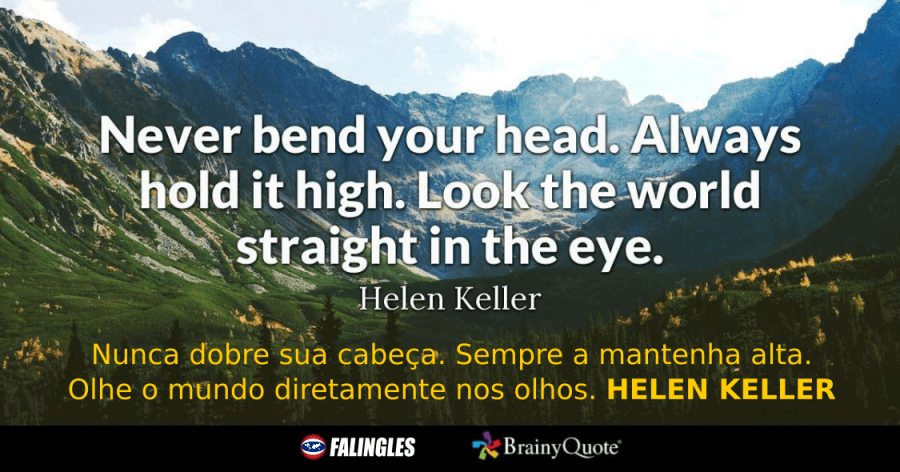 Nunca dobre sua cabeça. Sempre a mantenha alta. Olhe o mundo diretamente nos olhos.