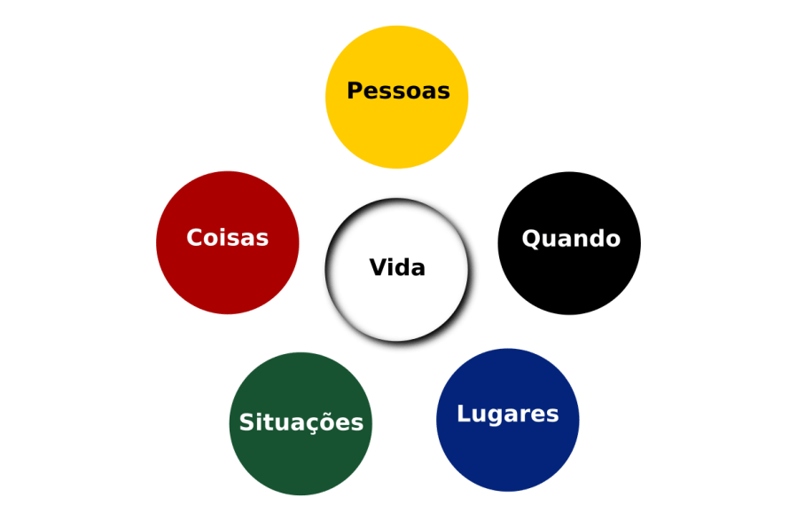 Para facilitar ao máximo o entendimento do que é a linguagem, dividimos tudo o que pensamos, todas nossas ideias e frases, em apenas 5 (cinco) setores: