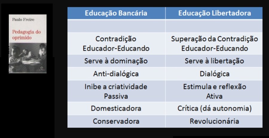 O livro Pedagogia do Oprimido de Paulo Freire traz à tona a questão da relação dialética (contradição) entre opressores versus oprimidos e de como é necessário uma práxis que possa orientar uma ação visando a superação dessas contradições.